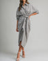 Effortlessly chic and endlessly versatile, this striped button-down midi dress is your new go-to for casual elegance. The front tie detail adds a flirty touch, while roll-up sleeves with button tabs let you adjust your look on the fly. Perfect for layering, dressing up with heels, or keeping it relaxed—this dress does it all with style and personality.