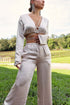 The perfect match for the Sloan pant, but also beautiful with any high waist bottom! It's sexy, it's timeless, and edgy all in one. This top can be worn in from summer to fall and easy to transition with different pieces. The Salma satin wraps around the waist/torso area, giving the satin top just enough edge.