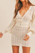 Spring/Summer perfection wrapped in one dress! Our Ibiza knit is the dress you need for date night, vacation, girls dinner....she's the one to reach for. Crochet/ Knitted , balloon sleeve detail with a cinched / fitted waistline. V-Cut neckline with button front closure.